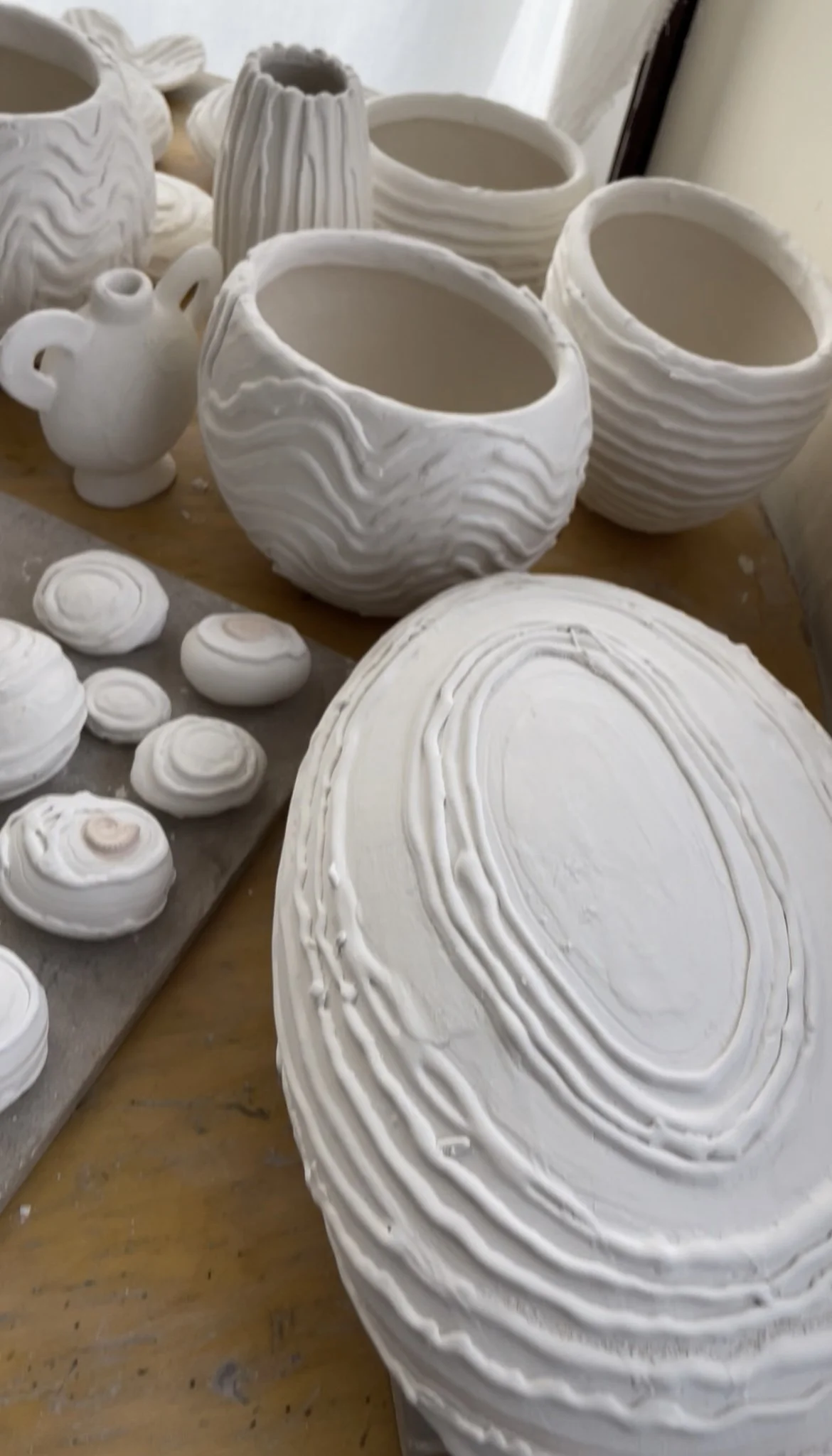 I like to make soft clay look like stone that is billions of years old, the clay is fragile but looks hard and solid.The patterns might seem to indicate a rough surface but in fact it is unexpectedly smooth : I am interested in these contradictions. Indeed in all of my work I look to embrace the unexpected, to be open to change : to see it transform my work into something beyond the ordinary. I strive to make vessels that feel as though they are alive and vibrant, objects that resonate in the hand and the mind.